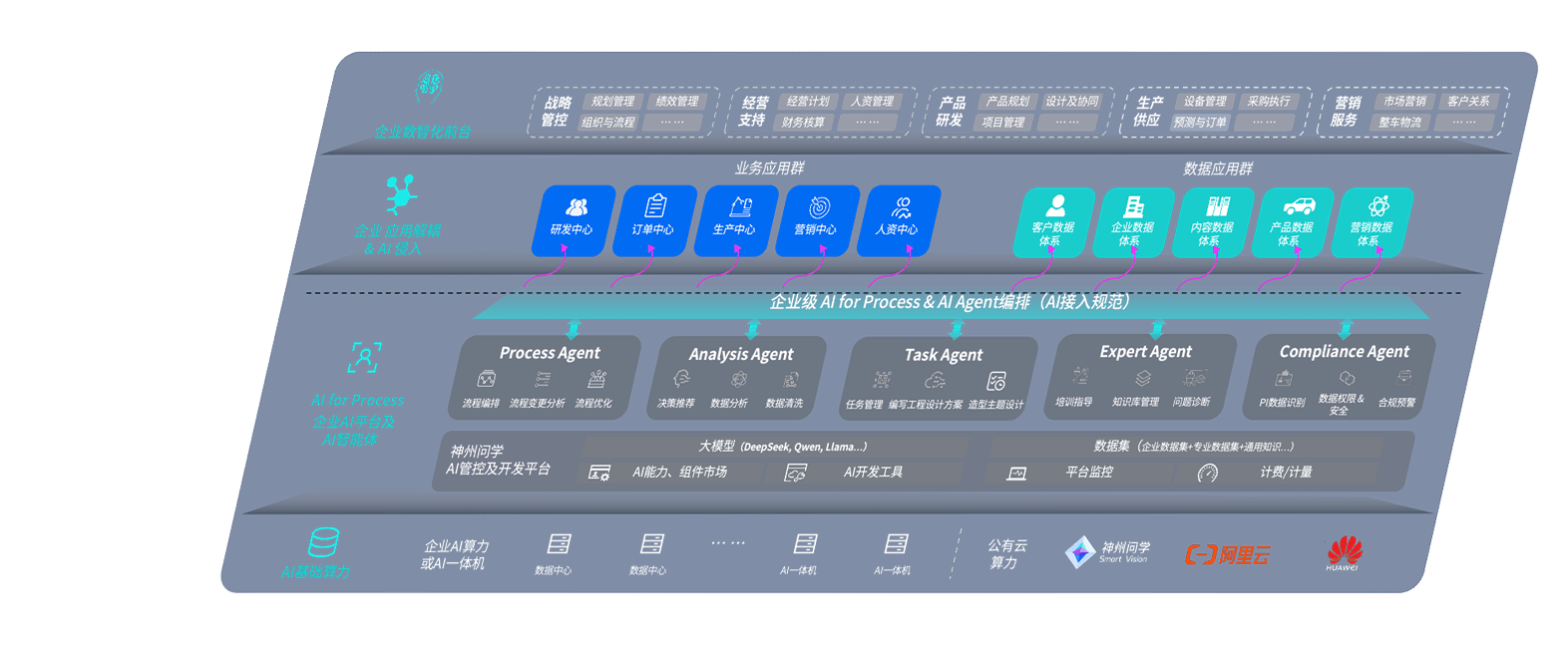 立博体育问学智车解决方案是一套基于AI技术的汽车行业智能化系统,,,覆盖从底层算力到顶层AI应用的全栈方案。。。方案由算力层、、模型层和应用层组成:算力层,,,,方案支持多种一体机配置,,,,具备云端灵活部署、、、、多云适配以及动态优化计算资源的能力;模型层,,立博体育问学平台版提供了企业级AI应用一站式构建与管理平台,,,,支持基于后训练强化技术的汽车企业专属模型的训练、、、评测和运营;应用层,,,立博体育问学DeepSeek版提供包括超级员工、、、、智能招采、、、、智能营销、、、智能客服、、、AI for BI等一系列解决方案,,可助力汽车行业实现数字化转型,,,让管理更智能、、响应更敏捷。。。